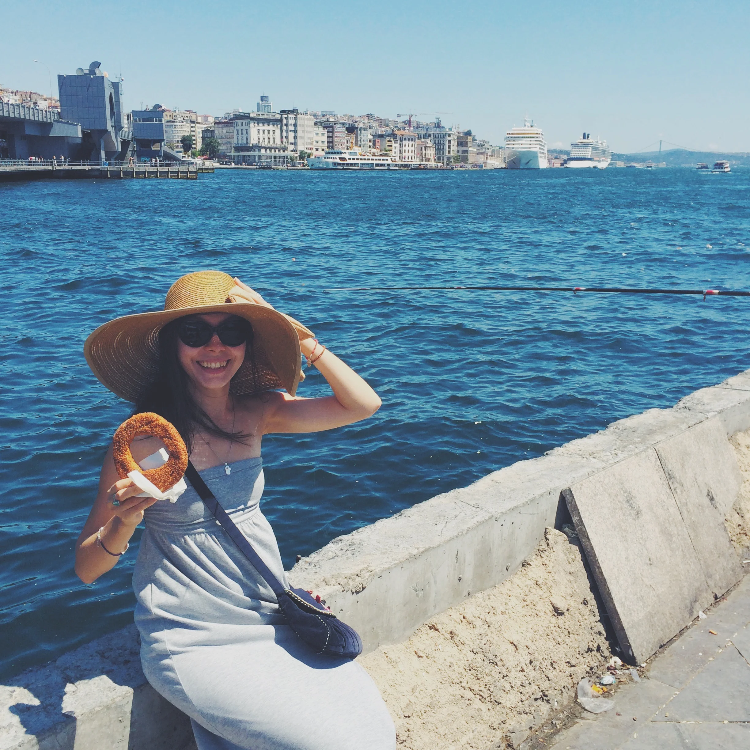 Enjoying a sesame-encrusted bread ring in Istanbul, Turkey