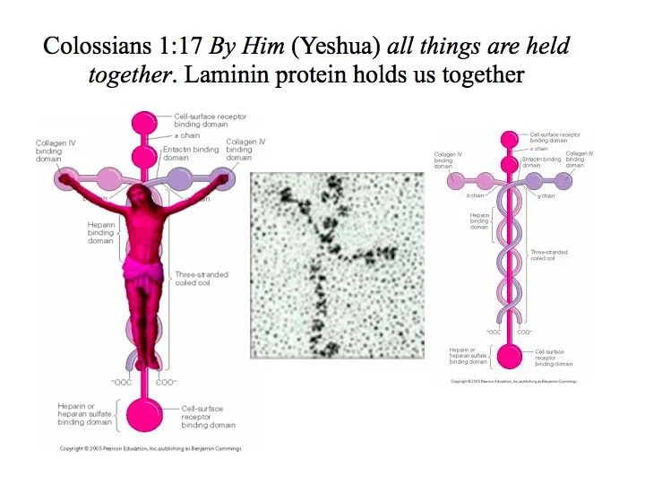 Louie Giglio has preached extensively on laminin, and shows how God designed laminin in the shape of a cross and gave it the particular function of “glue” in the body so that we can know through Scripture the truth that Christ holds all things together.