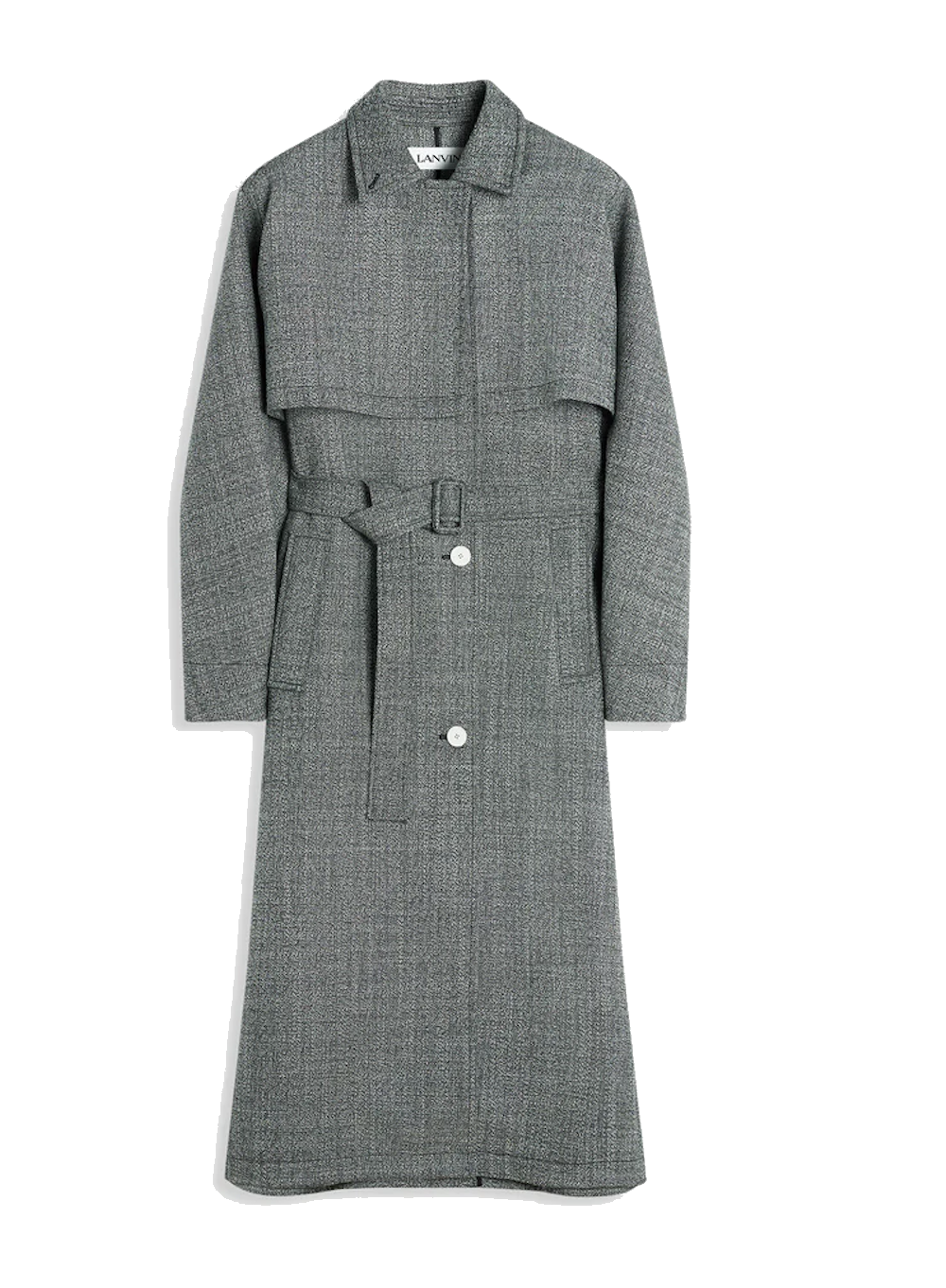 A perfect match with the red dress, this trench coat is made from virgin wool, which makes it ideal for mid-season. It features a belt to elegantly structure the outfit and create a feminine silhouette.