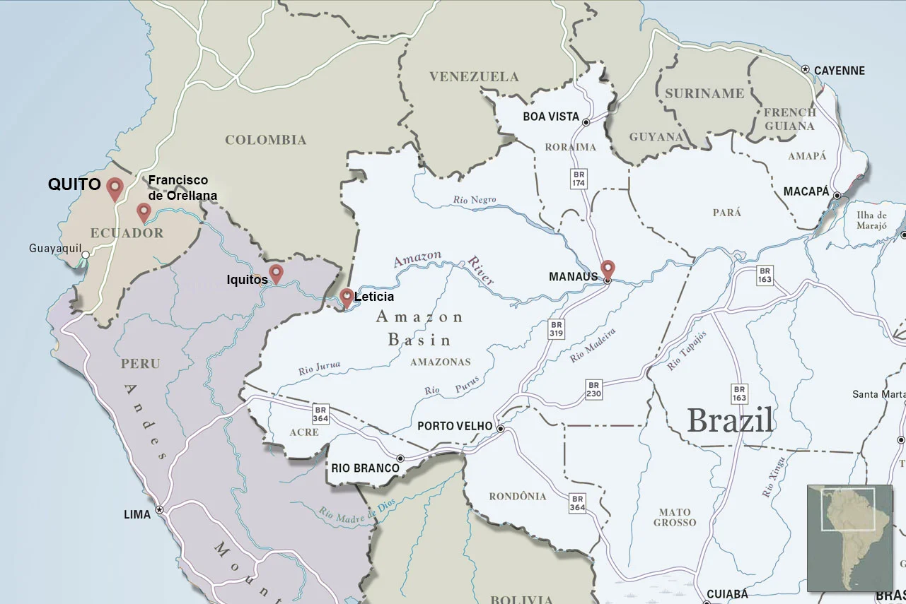 Remamos por infinitas curvas en compañía de delfines, monos, nutrias, capibaras, caimanes, perezosos, miles de aves e insectos voladores. Visitamos pequeños asentamientos Quechua y Huaorani, y finalmente llegamos a la desembocadura del Río Napo e iniciamos la segunda etapa del viaje al entrar en Perú.