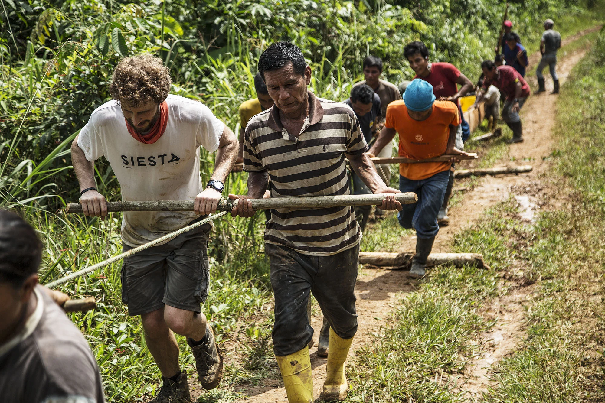 Durante dos semanas aprendimos a obtener de la madera una canoa de una sola pieza, y creamos la embarcación de cinco metros con la que remaré 3.000 kilómetros hasta llegar a Manaos, Brasil. Sentimos gran alivio al comprobar el control que el Ministerio del Ambiente de Ecuador lleva acabo para preservar los recursos naturales, y entendemos la necesidad de devolverle a la naturaleza aquello que tomamos de ella, por lo que plantamos dos árboles para ayudar a reemplazar la madera que obtuvimos del árbol caído.