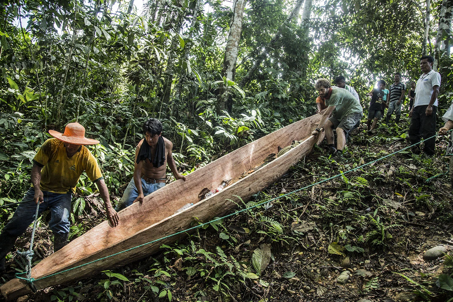 The Quechua Community taught us their customs and traditions, treated us like one of its members and made us feel part of the family. One of the traditions we enjoyed most was the Minga. Men, women and children join forces to move the canoes from their place of manufacture to the owner's house, where a final treatment is given to the wood with fire and charcoal to close the pores. At the end of the harsh march, the person who calls the Minga invites all his neighbors to eat and drink chicha, a fermented drink from cassavas and sweet potatos. It’s a moment when everyone laughs and jokes, and it’s also a time of thanksgiving and affection. Everyone knows that whenever they need support, their community will be there to help them. It was a lesson of fellowship and precious humility, knowing that on the day I would take my canoe out of the jungle, the community would be there to help me.