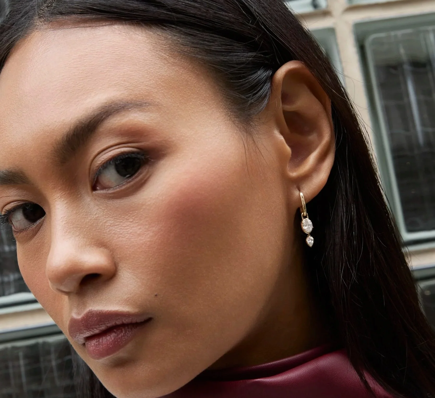 "This collection embodies the idyl standard of luxury,” says Alice, Head Designer for the brand. “The Poem collection is versatile and designed for personal expression. Each hoop is beautifully elevated on its own-clean-shaped with the perfect width and weight for everyday wear. But what makes them truly special is how each add-on creates its own personality. Petal is dainty and playful with our favorite pear-cut diamond, while Moon carries more impact yet still feels timeless. That's how we came up with the name Poem Collection, they all felt like little perfectly crafted poems that come to life through the wearer. By creating your own look in daily outfits, it's about elevating those tiny confidence moments in everyday life."