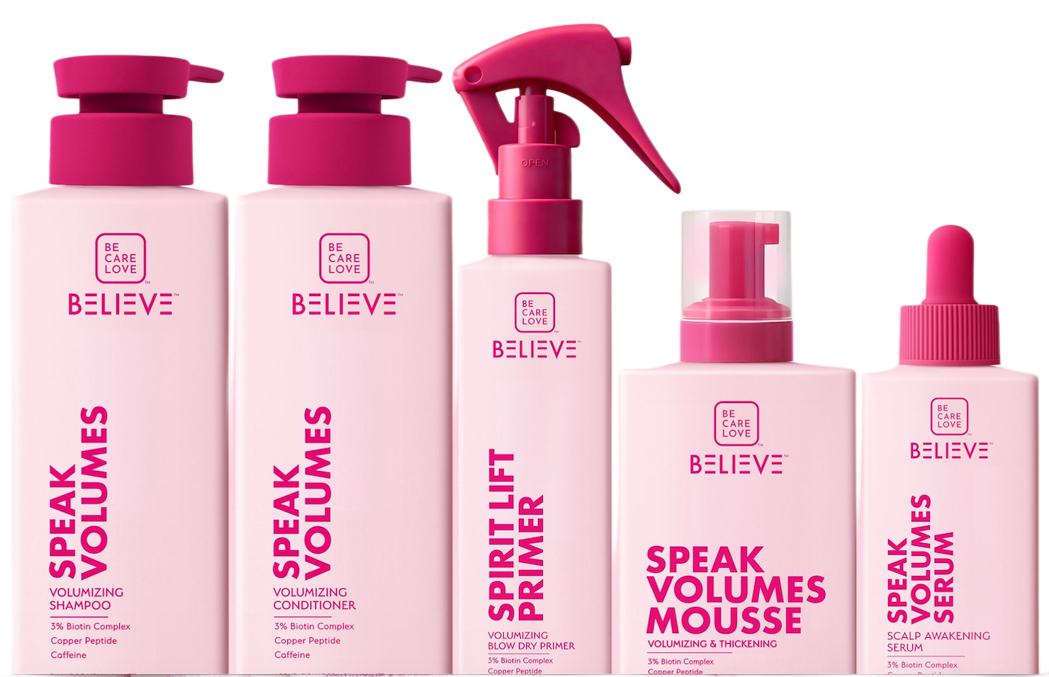 Recently launched at Whole Food, the BELIEVE Speaks Volume line is comprised with biotin, copper peptides, caffeine, and proteins that strengthens thinning, flat, and fine hair. Working from the scalp to strand, it provides resilience and fullness long term. The shampoo gives body to hair and purifies without stripping, the Conditioner strengthens and enhances, the Spirit Lift Primer is a blow dry prep spray that lifts from the root, the Scalp Awakening Serum is a daily use item that absorbs and provides a fuller look, while the Mousse gives volume.